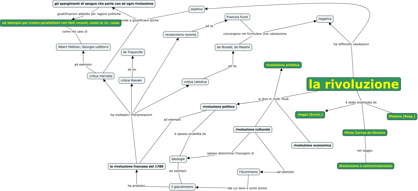Questa Cmap, creata con IHMC CmapTools, contiene informazioni relative a: Rivoluzione luca, la rivoluzione è stata analizzata da Hegel (Encicl.), la rivoluzione si dice in molti modi rivoluzione artistica, l'illuminismo dal cui seno è sorto anche il giacobinismo, Plinio Correa de Oliveira nel saggio Rivoluzione e controrivoluzione, rivoluzione culturale ad esempio l'illuminismo, gli spargimenti di sangue che porta con sè ogni rivoluzione giustificazioni addotte per ragioni politiche ad esempio per creare parallelismi con fatti recenti, come la riv. russa, la rivoluzione si dice in molti modi rivoluzione economica, de Bonald; de Maistre convergono nel formulare una valutazione negativa, critica marxista tende a giustificare anche gli spargimenti di sangue che porta con sè ogni rivoluzione, la rivoluzione francese del 1789 ha molteplici interpretazioni critica liberale, la rivoluzione ha differenti valutazioni positiva, la rivoluzione francese del 1789 ha molteplici interpretazioni revisionismo recente, ideologie ad esempio il giacobinismo, la rivoluzione si dice in molti modi rivoluzione politica, la rivoluzione è stata analizzata da Platone (Resp.), la rivoluzione si dice in molti modi rivoluzione culturale, positiva tende a giustificare anche gli spargimenti di sangue che porta con sè ogni rivoluzione, la rivoluzione francese del 1789 ha molteplici interpretazioni critica cattolica, il giacobinismo ha prodotto la rivoluzione francese del 1789, critica marxista ad esempio Albert Mathiez; Georges Lefebvre