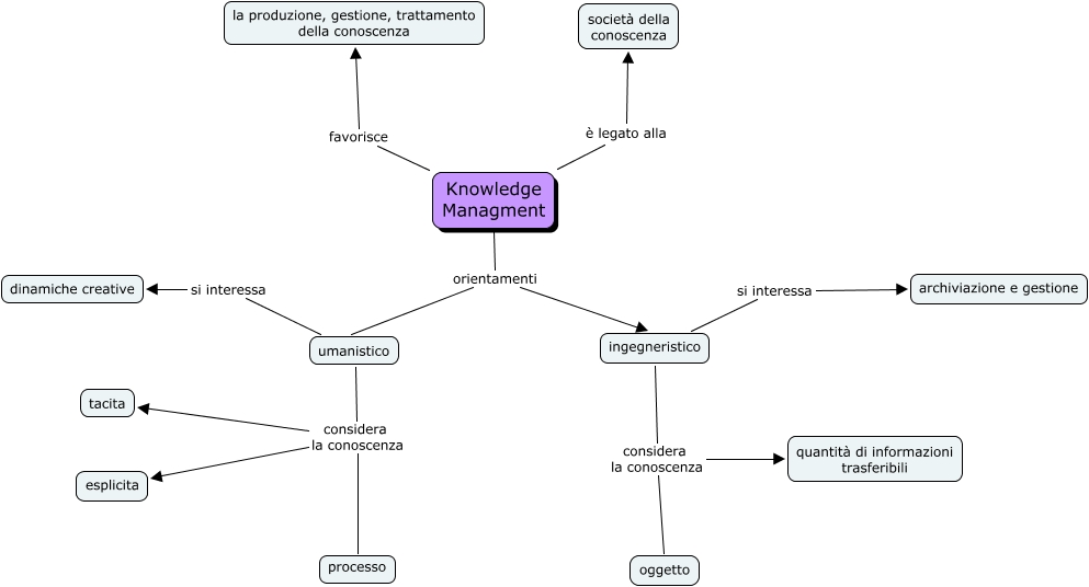 KM, umanistico considera la conoscenza processo, ingegneristico considera la conoscenza oggetto, umanistico considera la conoscenza tacita, umanistico considera la conoscenza esplicita, Knowledge Managment è legato alla società della conoscenza, Knowledge Managment favorisce la produzione, gestione, trattamento della conoscenza, ingegneristico considera la conoscenza quantità di informazioni trasferibili, umanistico si interessa dinamiche creative, Knowledge Managment orientamenti umanistico, ingegneristico si interessa archiviazione e gestione