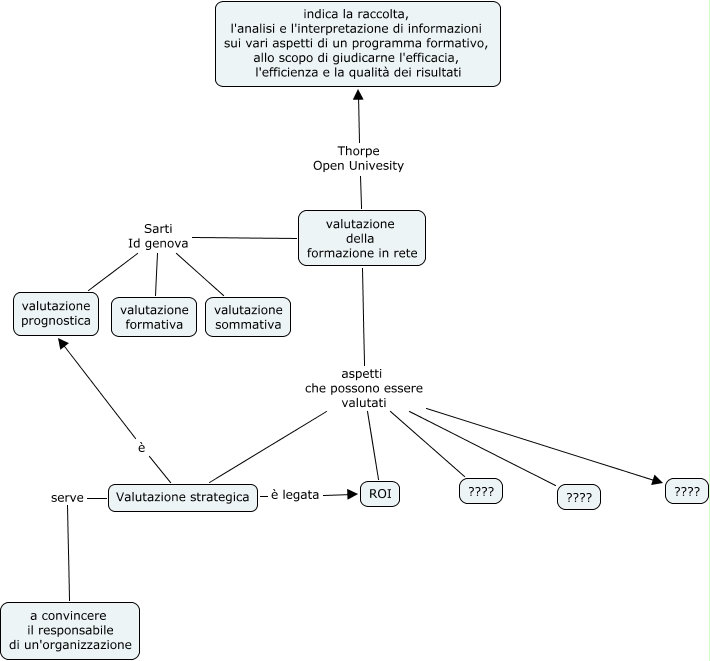 valutazione della formazione in rete, Valutazione strategica serve a convincere il responsabile di un'organizzazione, valutazione della formazione in rete Thorpe Open Univesity indica la raccolta, l'analisi e l'interpretazione di informazioni sui vari aspetti di un programma formativo, allo scopo di giudicarne l'efficacia, l'efficienza e la qualità dei risultati, valutazione della formazione in rete aspetti che possono essere valutati ????, valutazione della formazione in rete aspetti che possono essere valutati Valutazione strategica, valutazione della formazione in rete Sarti Id genova valutazione prognostica, valutazione della formazione in rete Sarti Id genova valutazione formativa, valutazione della formazione in rete aspetti che possono essere valutati ????, Valutazione strategica è valutazione prognostica, Valutazione strategica è legata ROI, valutazione della formazione in rete aspetti che possono essere valutati ROI