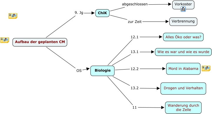 CMs von Uwe A, ChiK zur Zeit Verbrennung, Biologie 13.1 Wie es war und wie es wurde, Biologie 12.1 Alles Öko oder was?, Biologie 12.2 Mord in Alabama, Aufbau der geplanten CM 9. Jg ChiK, ChiK abgeschlossen Vorkoster, Aufbau der geplanten CM OS Biologie, Biologie 11 Wanderung durch die Zelle, Biologie 13.2 Drogen und Verhalten