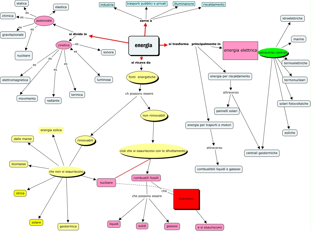 energia, potenziale es gravitazionale, cinetica es elettromagnetica, energia serve a riscaldamento, nucleare cioè che si esauriscono con lo sfruttamento combustili fossili, rinnovabili che non si esauriscono energia eolica, potenziale es nucleare, energia elettrica attraverso centrali marine, combustili fossili che possono essere solidi, energia elettrica attraverso centrali idroelettriche, potenziale es elastica