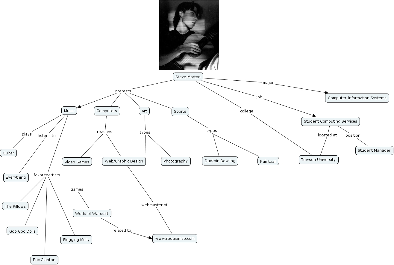 smorto1, Student Computing Services located at Towson University, Music favoriteartists Eric Clapton, Music favoriteartists Goo Goo Dolls, Steve Morton interests Computers, Steve Morton major Computer Information Systems, Art types Photography, Computers reasons Video Games, Steve Morton college Towson University, Steve Morton interests Sports, Steve Morton job Student Computing Services