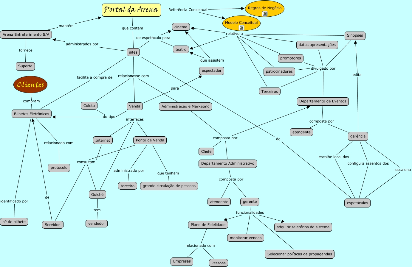 arena_s_a_cmap, Sinopses divulgado por Departamento de Eventos, Terceiros relativo a cinema, datas apresentações divulgado por Terceiros, Bilhetes Eletrônicos identificado por nº de bilhete, Guichê tem vendedor, sites relacionasse com Venda, Ponto de Venda que tenham grande circulação de pessoas, Venda do tipo Bilhetes Eletrônicos, Guichê consultam Servidor, Venda interfaces Internet