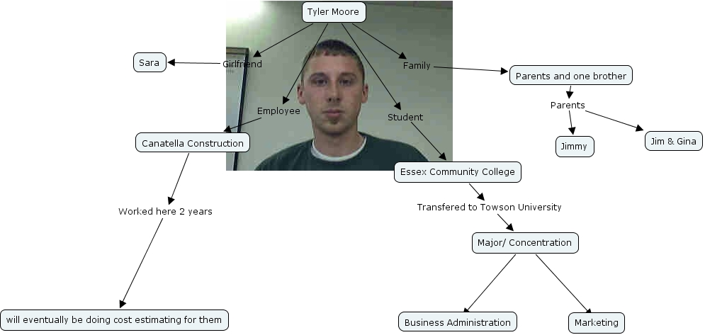 tmoore2, Major/ Concentration ???? Marketing, Tyler Moore Family Parents and one brother, Parents and one brother Parents Jimmy, Tyler Moore Student Essex Community College, Essex Community College Transfered to Towson University Major/ Concentration, Tyler Moore Girlfriend Sara, Canatella Construction Worked here 2 years will eventually be doing cost estimating for them, Tyler Moore Employee Canatella Construction, Parents and one brother Parents Jim & Gina, Major/ Concentration ???? Business Administration