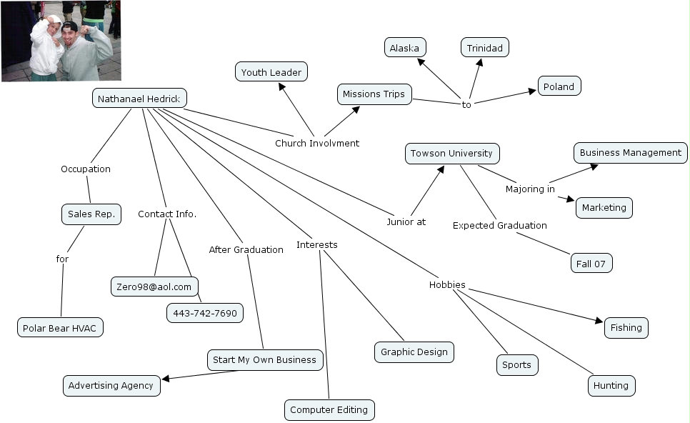 Nathanael Hedrick, Nathanael Hedrick Church Involvment Missions Trips, Nathanael Hedrick Contact Info. Zero98@aol.com, Nathanael Hedrick Hobbies Hunting, Missions Trips to Trinidad, Nathanael Hedrick Hobbies Fishing, Start My Own Business Advertising Agency, Nathanael Hedrick Hobbies Sports, Towson University Majoring in Business Management, Towson University Expected Graduation Fall 07, Nathanael Hedrick Contact Info. 443-742-7690