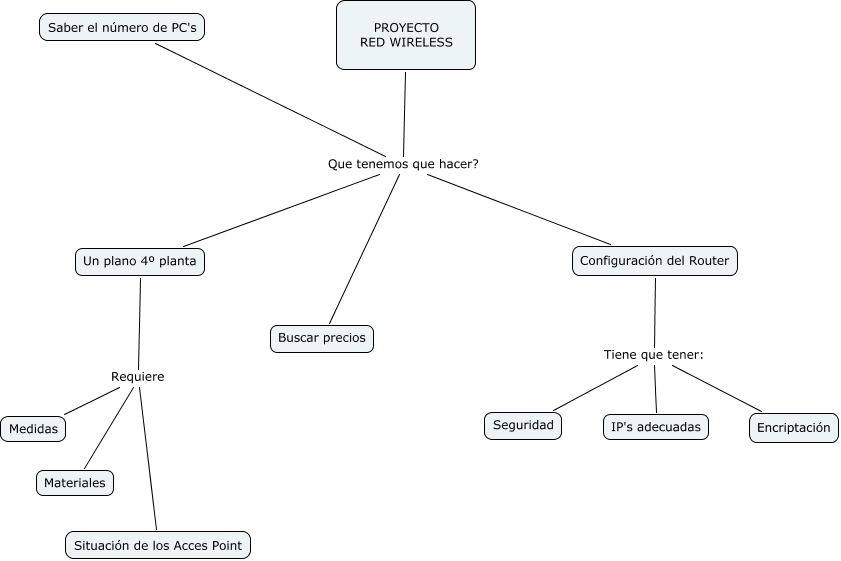 ProyectoWireLess, PROYECTO RED WIRELESS Que tenemos que hacer? Configuración del Router, Un plano 4º planta Requiere Materiales, PROYECTO RED WIRELESS Que tenemos que hacer? Un plano 4º planta, PROYECTO RED WIRELESS Que tenemos que hacer? Saber el número de PC's, Un plano 4º planta Requiere Situación de los Acces Point, Configuración del Router Tiene que tener: Encriptación, Configuración del Router Tiene que tener: Seguridad, Un plano 4º planta Requiere Medidas, PROYECTO RED WIRELESS Que tenemos que hacer? Buscar precios, Configuración del Router Tiene que tener: IP's adecuadas