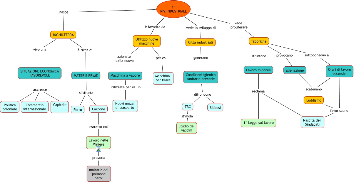 Rivoluzione Industriale rev, Luddismo scatenano alienazione, Condizioni igienico sanitarie precarie diffondono TBC, 1^ RIV.INDUSTRIALE è favorita da Utilizzo nuove macchine, fabbriche provocano alienazione, INGHILTERRA è ricca di MATERIE PRIME, INGHILTERRA vive una SITUAZIONE ECONOMICA FAVOREVOLE, SITUAZIONE ECONOMICA FAVOREVOLE accresce Capitale, Macchina a vapore utilizzate per es. in Nuovi mezzi di trasporto, Politica coloniale accresce Capitale, Lavoro nelle Miniere provoca malattia del "polmone nero"