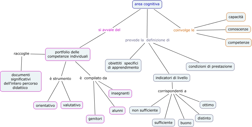 valutazione area cognitiva1, area cognitiva prevede la definizione di obiettiti specifici di apprendimento, area cognitiva prevede la definizione di condizioni di prestazione, portfolio delle competenze individuali raccoglie documenti significativi dell'intero percorso didattico, portfolio delle competenze individuali è compilato da insegnanti, indicatori di livello corrispondenti a sufficiente, area cognitiva coinvolge le competenze, area cognitiva prevede la definizione di indicatori di livello, indicatori di livello corrispondenti a non sufficiente, portfolio delle competenze individuali è strumento valutativo, indicatori di livello corrispondenti a distinto