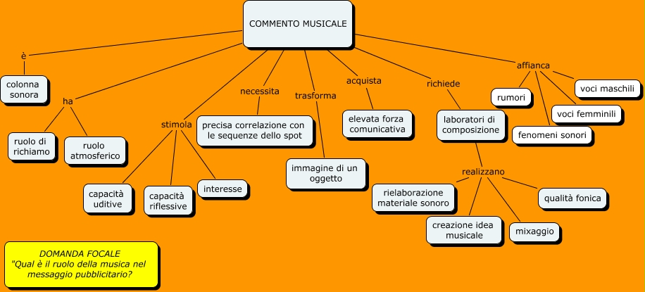 Commento musicale, COMMENTO MUSICALE affianca rumori, COMMENTO MUSICALE affianca voci femminili, COMMENTO MUSICALE richiede laboratori di composizione, COMMENTO MUSICALE ha ruolo atmosferico, COMMENTO MUSICALE trasforma immagine di un oggetto, COMMENTO MUSICALE stimola capacità riflessive, COMMENTO MUSICALE è colonna sonora, COMMENTO MUSICALE affianca voci maschili, laboratori di composizione realizzano qualità fonica, COMMENTO MUSICALE stimola capacità uditive