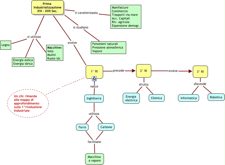 Mappa indice RI, Prima Industrializzazione XVI - XVII Sec. si utilizza Legno, 2^ RI evolve 3^ RI, Ferro facilitano Macchina a vapore, Prima Industrializzazione XVI - XVII Sec. è caratterizzata Manifatture Commercio Trasporti via mare Acc. Capitali Riv. agricola Espansione demogr., 3^ RI discende Informatica, 3^ RI discende Robotica, 1^ RI precede 2^ RI, Prima Industrializzazione XVI - XVII Sec. si utilizza Macchine: Vela Mulini Ruote idr., Prima Industrializzazione XVI - XVII Sec. si utilizza Energia eolica Energia idrica, Inghilterra utilizza Ferro