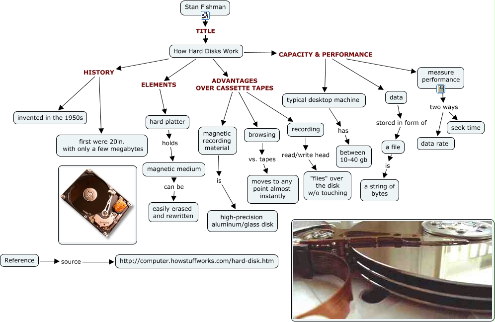 Digital Technology - Hard Disks, typical desktop machine has between 10-40 gb, How Hard Disks Work CAPACITY & PERFORMANCE typical desktop machine, hard platter holds magnetic medium, How Hard Disks Work ADVANTAGES OVER CASSETTE TAPES recording, recording read/write head "flies" over the disk w/o touching, How Hard Disks Work ADVANTAGES OVER CASSETTE TAPES browsing, How Hard Disks Work CAPACITY & PERFORMANCE measure performance, magnetic recording material is high-precision aluminum/glass disk, magnetic medium can be easily erased and rewritten, measure performance two ways seek time