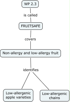 WP 2.3, FRUITSAFE is called WP 2.3, Non-allergy and low-allergy fruit identifies Low-allergenic chains, Non-allergy and low-allergy fruit identifies Low-allergenic apple varieties, Non-allergy and low-allergy fruit covers FRUITSAFE