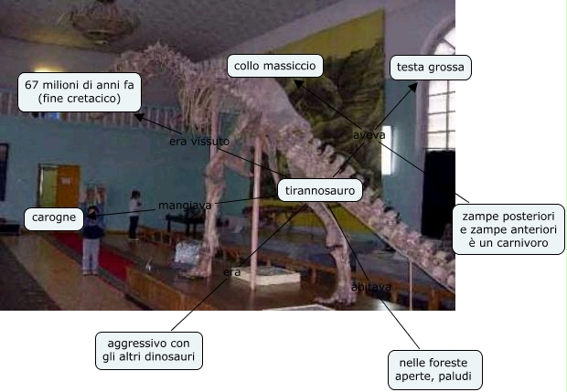 tirannosauro, tirannosauro mangiava carogne, tirannosauro abitava nelle foreste aperte, paludi, tirannosauro era aggressivo con gli altri dinosauri, tirannosauro era vissuto 67 milioni di anni fa (fine cretacico), tirannosauro aveva collo massiccio, tirannosauro aveva zampe posteriori e zampe anteriori è un carnivoro, tirannosauro aveva testa grossa