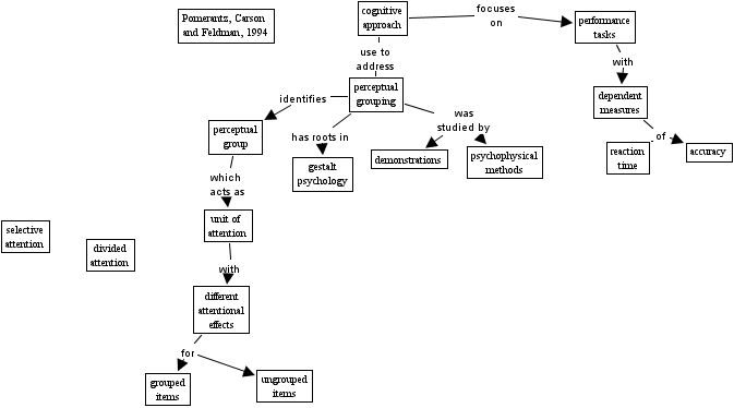 pomerantz et al 1994, dependent measures of accuracy, perceptual grouping was studied by demonstrations, perceptual grouping was studied by psychophysical methods, perceptual grouping has roots in gestalt psychology, performance tasks with dependent measures, different attentional effects for ungrouped items, dependent measures of reaction time, perceptual group which acts as unit of attention, perceptual grouping identifies perceptual group, unit of attention with different attentional effects