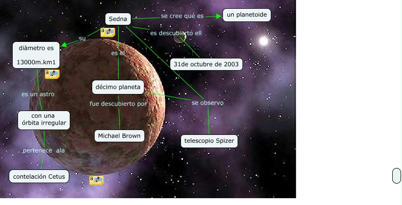 Sedna, Sedna se observo telescopio Spizer, décimo planeta fue descubierto por Michael Brown, Sedna su diàmetro es 13000m.km1, Sedna es descubierto ell 31de octubre de 2003, con una órbita irregular pertenece ala contelación Cetus, décimo planeta se observo telescopio Spizer, Sedna es el décimo planeta, Sedna se cree que es un planetoide, diàmetro es 13000m.km1 es un astro con una órbita irregular