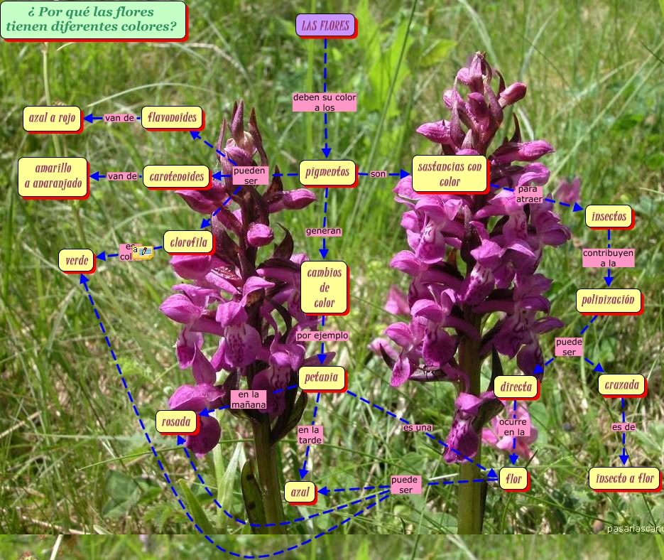 las flores, LAS FLORES deben su color a los pigmentos, directa ocurre en la flor, cambios de color por ejemplo petunia, petunia es una flor, petunia en la mañana rosada, cruzada es de insecto a flor, flavonoides van de azul a rojo, clorofila es color verde, pigmentos son sustancias con color, pigmentos pueden ser carotenoides
