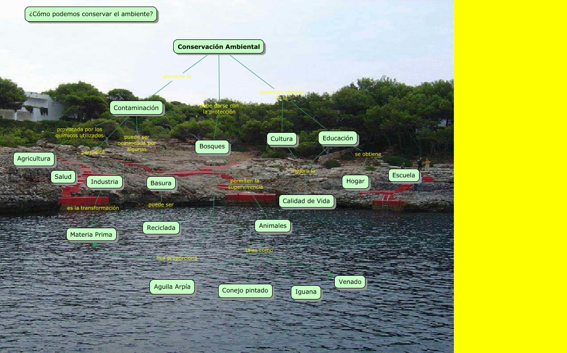 AMBIENTE, Animales tales como Conejo pintado, Bosques permiten la supervivencia Animales, Conservación Ambiental podemos obtener en la Educación, Animales tales como Venado, Industria es la transformación Materia Prima, Educación mejora la Calidad de Vida, Cultura mejora la Calidad de Vida, Contaminación provocada por los químicos utilizados Agricultura, Conservación Ambiental podemos obtener en la Cultura, Conservación Ambiental previene la Contaminación