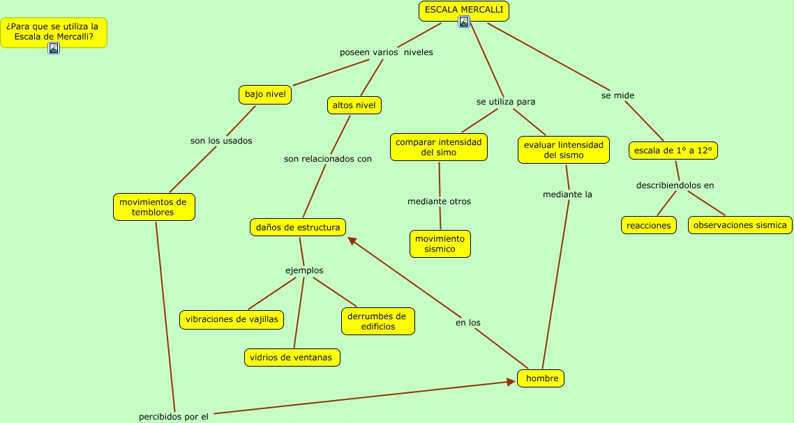 escala mercalli, daños de estructura ejemplos derrumbes de edificios, ESCALA MERCALLI poseen varios niveles altos nivel, movimientos de temblores percibidos por el hombre, ESCALA MERCALLI poseen varios niveles bajo nivel, escala de 1° a 12° describiendolos en reacciones, bajo nivel son los usados movimientos de temblores, ESCALA MERCALLI se utiliza para evaluar lintensidad del sismo, daños de estructura ejemplos vidrios de ventanas, ESCALA MERCALLI se utiliza para comparar intensidad del simo, comparar intensidad del simo mediante otros movimiento sismico