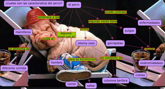 el perro, el perro pertenece a los mamiferos, sitema oseo se compone de craneo, el perro algunas veces tiene pulgas, el perro algunas veces tiene garrapatas, pulgas causan enfermedades, garrapatas causan enfermedades, sitema oseo se compone de columna bertbra, el perro posee sitema oseo, el perro puede contraer enfermedades, el perro algunos viven con el hombre