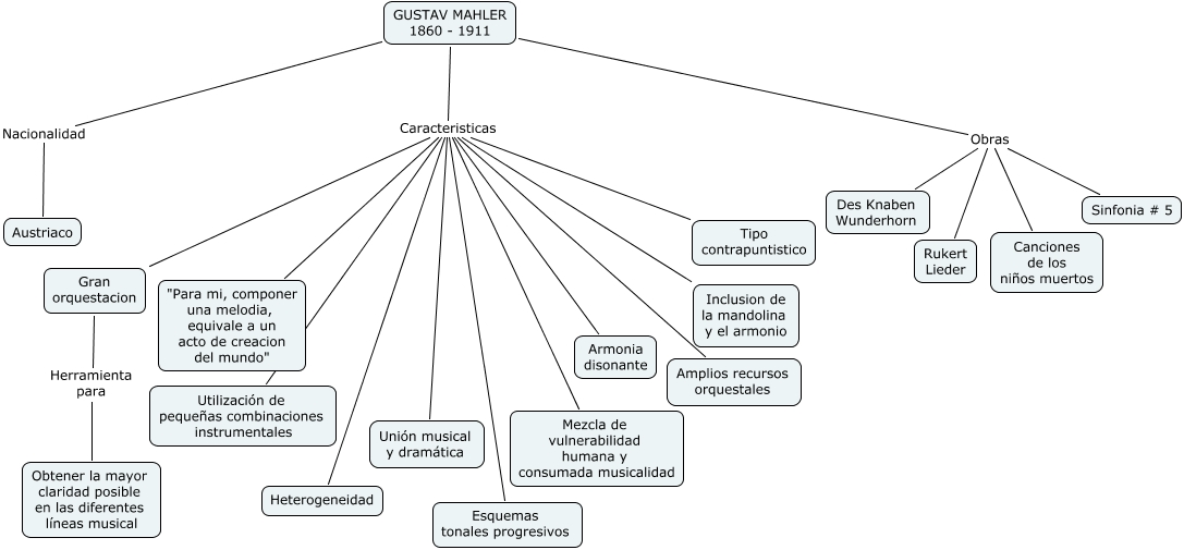 Mahler, GUSTAV MAHLER 1860 - 1911 Caracteristicas Utilización de pequeñas combinaciones instrumentales, GUSTAV MAHLER 1860 - 1911 Obras Canciones de los niños muertos, GUSTAV MAHLER 1860 - 1911 Caracteristicas Mezcla de vulnerabilidad humana y consumada musicalidad, GUSTAV MAHLER 1860 - 1911 Obras Des Knaben Wunderhorn, GUSTAV MAHLER 1860 - 1911 Caracteristicas Tipo contrapuntistico, GUSTAV MAHLER 1860 - 1911 Caracteristicas Gran orquestacion, GUSTAV MAHLER 1860 - 1911 Obras Rukert Lieder, GUSTAV MAHLER 1860 - 1911 Nacionalidad Austriaco, GUSTAV MAHLER 1860 - 1911 Caracteristicas Amplios recursos orquestales, GUSTAV MAHLER 1860 - 1911 Caracteristicas Armonia disonante