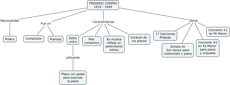 chopin, FREDERIC CHOPIN 1810 - 1849 Caracteristicas Estilo unico, FREDERIC CHOPIN 1810 - 1849 Nacionalidad Polaco, FREDERIC CHOPIN 1810 - 1849 Obras 17 Canciones Polacas, FREDERIC CHOPIN 1810 - 1849 Fue un Compositor, FREDERIC CHOPIN 1810 - 1849 Obras Concierto #2 en Fa Menor para piano y orquesta, FREDERIC CHOPIN 1810 - 1849 Caracteristicas Corazon de los pianos, FREDERIC CHOPIN 1810 - 1849 Fue un Pianista, Estilo unico utilizando Piano con pedal para suavizar la pieza, FREDERIC CHOPIN 1810 - 1849 Caracteristicas Mas romantico, FREDERIC CHOPIN 1810 - 1849 Caracteristicas Su musica refleja un sentimiento intimo
