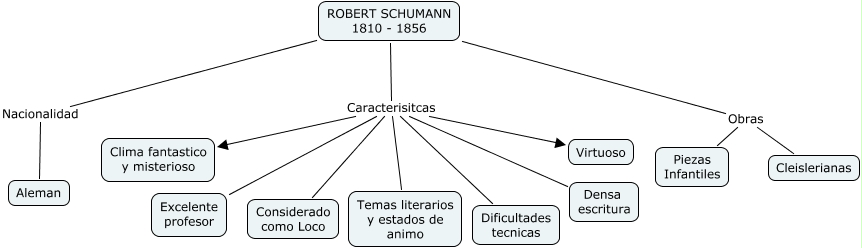 Schumann, ROBERT SCHUMANN 1810 - 1856 Caracterisitcas Dificultades tecnicas, ROBERT SCHUMANN 1810 - 1856 Nacionalidad Aleman, ROBERT SCHUMANN 1810 - 1856 Caracterisitcas Considerado como Loco, ROBERT SCHUMANN 1810 - 1856 Obras Piezas Infantiles, ROBERT SCHUMANN 1810 - 1856 Caracterisitcas Virtuoso, ROBERT SCHUMANN 1810 - 1856 Caracterisitcas Temas literarios y estados de animo, ROBERT SCHUMANN 1810 - 1856 Obras Cleislerianas, ROBERT SCHUMANN 1810 - 1856 Caracterisitcas Densa escritura, ROBERT SCHUMANN 1810 - 1856 Caracterisitcas Clima fantastico y misterioso, ROBERT SCHUMANN 1810 - 1856 Caracterisitcas Excelente profesor