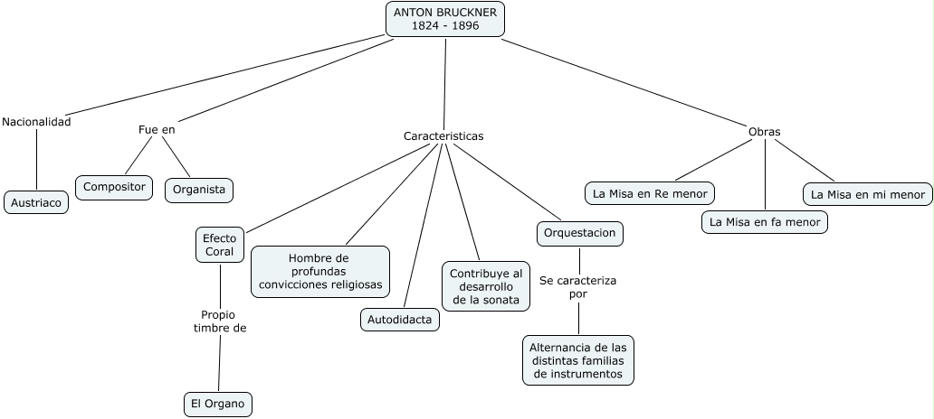 Bruckner, ANTON BRUCKNER 1824 - 1896 Fue en Organista, ANTON BRUCKNER 1824 - 1896 Caracteristicas Contribuye al desarrollo de la sonata, ANTON BRUCKNER 1824 - 1896 Caracteristicas Efecto Coral, Efecto Coral Propio timbre de El Organo, ANTON BRUCKNER 1824 - 1896 Fue en Compositor, ANTON BRUCKNER 1824 - 1896 Caracteristicas Autodidacta, ANTON BRUCKNER 1824 - 1896 Obras La Misa en mi menor, Orquestacion Se caracteriza por Alternancia de las distintas familias de instrumentos, ANTON BRUCKNER 1824 - 1896 Obras La Misa en fa menor, ANTON BRUCKNER 1824 - 1896 Obras La Misa en Re menor