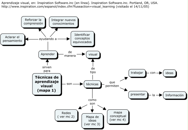 AV inspiration MC 1, Aprender ayudando a Aclarar el pensamiento, técnicas de tipo visual, Técnicas de aprendizaje visual (mapa 1) sirven para Aprender, técnicas que permiten presentar, técnicas como son mapa conceptual (ver mc 4), Aprender ayudando a Integrar nuevos conocimientos, técnicas como son Mapa de ideas (ver mc 3), técnicas como son Redes ( ver mc 2), Aprender ayudando a Identificar conceptos equivocados, presentar la Información