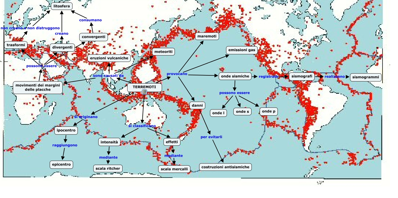 terremoti, TERREMOTI provocano maremoti, movimenti dei margini delle placche possono essere convergenti, divergenti creano litosfera, convergenti consumano litosfera, movimenti dei margini delle placche possono essere divergenti, TERREMOTI sono causati da movimenti dei margini delle placche, onde sismiche possono essere onde p, TERREMOTI si originano ipocentro, danni per evitarli costruzioni antisismiche, TERREMOTI si classificano effetti