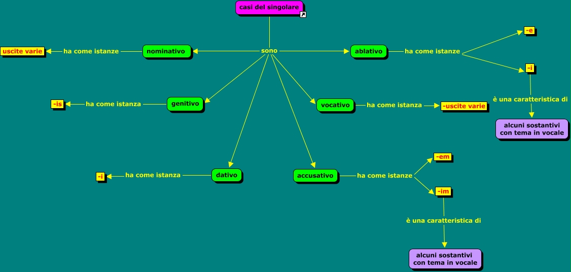 Casi della terza declinazione - Terminazioni del singolare, ablativo ha come istanze -i, casi del singolare sono accusativo, accusativo ha come istanze -im, casi del singolare sono nominativo, nominativo ha come istanze uscite varie, casi del singolare sono dativo, dativo ha come istanza -i, accusativo ha come istanze -em, casi del singolare sono ablativo, casi del singolare sono genitivo