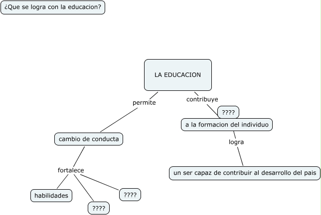 EDUCACION, cambio de conducta fortalece ????, ???? logra un ser capaz de contribuir al desarrollo del pais, cambio de conducta fortalece habilidades, cambio de conducta fortalece ????, LA EDUCACION contribuye a la formacion del individuo, LA EDUCACION permite cambio de conducta