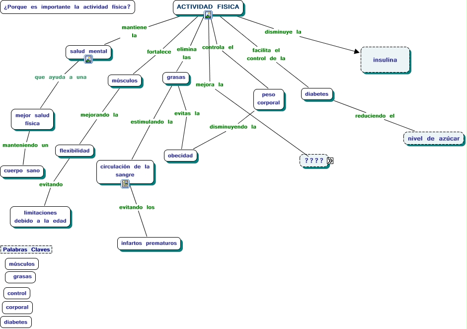 MAPA No. 1, músculos mejorando la flexibilidad, ACTIVIDAD FISICA controla el peso corporal, diabetes reduciendo el nivel de azúcar, ACTIVIDAD FISICA fortalece músculos, ACTIVIDAD FISICA mejora la calidad de vida, calidad de vida aleja las enfermedades, ACTIVIDAD FISICA elimina las grasas, ACTIVIDAD FISICA mantiene la salud mental, ACTIVIDAD FISICA disminuye la insulina, flexibilidad evitando limitaciones debido a la edad