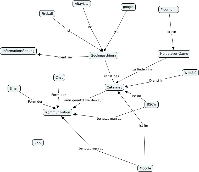 Internet, Suchmaschinen Dienst des Internet, BSCW ist im Internet, Email Form der Kommunikation, Moorhuhn ist ein Multiplayer-Game, Web2.0 Dienst im Internet, Fireball ist Suchmaschinen, Suchmaschinen dient zur Informationsfindung, Moodle ist im Internet, Multiplayer-Game zu finden im Internet, google ist Suchmaschinen
