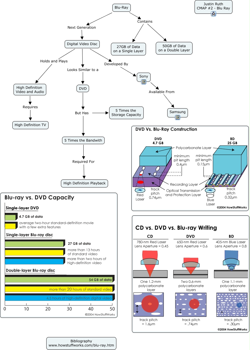 Tech Cmap, Blu-Ray Contains 27GB of Data on a Single Layer, 5 Times the Bandwith Required For High Definition Playback, Blu-Ray Contains 50GB of Data on a Double Layer, Digital Video Disc Holds and Plays High Definition Video and Audio, Digital Video Disc Developed By Sony, DVD But Has 5 Times the Storage Capacity, Blu-Ray Next Generation Digital Video Disc, Digital Video Disc Looks Similar to a DVD, DVD But Has 5 Times the Bandwith, Sony Available From Samsung