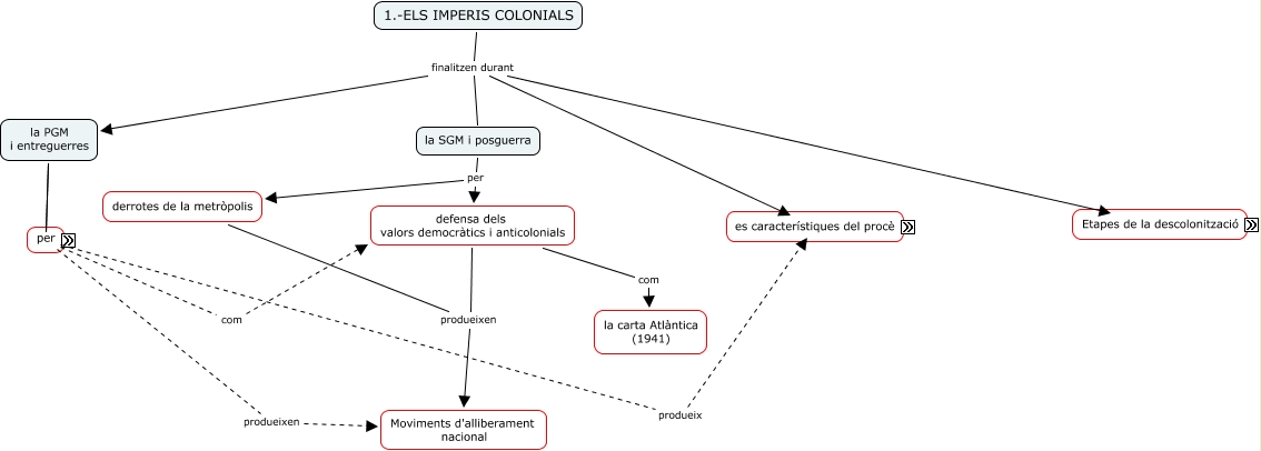 Exercici11, la SGM i posguerra per defensa dels valors democràtics i anticolonials, negociadora o pacífica com Índia, 1956-1969 ???? Major part d'Àfrica, canvis relacions metròpoli-colònia com defensa dels valors democràtics i anticolonials, aparició de grups nacionalistes produeixen Moviments d'alliberament nacional, la PGM i entreguerres per canvis relacions metròpoli-colònia, la crispació social provocada per l'explotació econòmica, la crispació social produeix armada o violenta, 1.-ELS IMPERIS COLONIALS finalitzen durant la SGM i posguerra, Etapes de la descolonització són 1945-1055