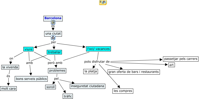 Barcelona, l'oci/ vacances pots disfrutar de les compres, viure on la vivenda, l'oci/ vacances pots disfrutar de gran oferta de bars i restaurants, l'oci/ vacances pots disfrutar de la platja, Barcelona és una ciutat, problemes pel inseguretat ciutadana, l'oci/ vacances pots disfrutar de art, l'oci/ vacances però amb problemes, una ciutat per treballar, problemes pel soroll