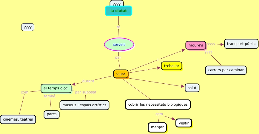 activitat 2, cobrir les necessitats biològiques com menjar, el temps d'oci per suposat museus i espais artístics, el temps d'oci com cinemes, teatres, la ciutat ???? ????, viure i moure's, viure i treballar, cobrir les necessitats biològiques com vestir, el temps d'oci també parcs, moure's ???? carrers per caminar, moure's ???? transport públic
