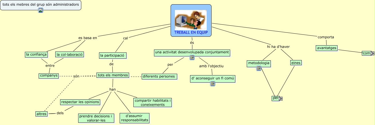Inicial1, metodologia per eines, la col·laboració entre companys, tots els membres han compartir habilitats i coneixements, TREBALL EN EQUIP cal la participació, TREBALL EN EQUIP comporta avantatges, una activitat desenvolupada conjuntament per diferents persones, tots els membres han prendre decisions i valorar-les, respectar les opinions dels altres, altres són tots els membres, millora i creació que aconsegueixen resultats amb menys esforç