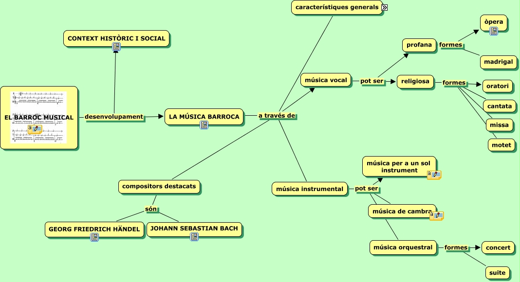 EXERCICI 18 FINAL, música orquestral formes concert, CARACTERÍSTIQUES DE LA MÚSICA BARROCA A TRAVÉS DELS SEUS ELEMENTS CONSTITUTIUS són aparició del concepte d'acord, profana formes madrigal, LA MÚSICA BARROCA a través de música vocal, característiques generals a través de música instrumental, LA MÚSICA BARROCA a través de música instrumental, música instrumental pot ser música de cambra, religiosa formes motet, CARACTERÍSTIQUES DE LA MÚSICA BARROCA A TRAVÉS DELS SEUS ELEMENTS CONSTITUTIUS són melodies i ritmes més lliures, religiosa formes missa