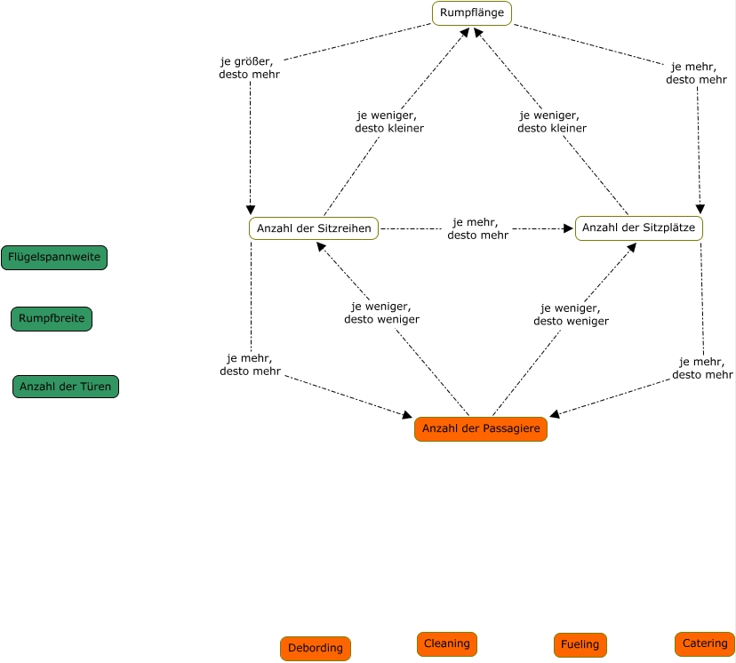 Catering, Anzahl der Sitzplätze je mehr, desto mehr Anzahl der Passagiere, Anzahl der Passagiere je weniger, desto weniger Anzahl der Sitzreihen, Anzahl der Passagiere je weniger, desto weniger Anzahl der Sitzplätze, Anzahl der Sitzplätze je weniger, desto kleiner Rumpflänge, Rumpflänge je mehr, desto mehr Anzahl der Sitzplätze, Anzahl der Sitzreihen je mehr, desto mehr Anzahl der Passagiere, Anzahl der Sitzreihen je weniger, desto kleiner Rumpflänge, Rumpflänge je größer, desto mehr Anzahl der Sitzreihen, Anzahl der Sitzreihen je mehr, desto mehr Anzahl der Sitzplätze