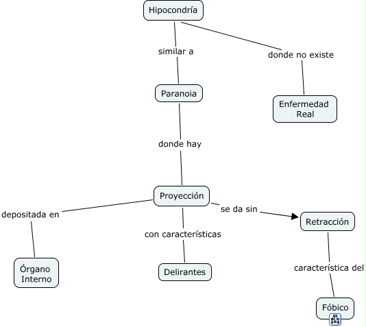 Hipocondría, Proyección con características Delirantes, Proyección depositada en Órgano Interno, Hipocondría donde no existe Enfermedad Real, Paranoia donde hay Proyección, Hipocondría similar a Paranoia, Retracción característica del Fóbico, Proyección se da sin Retracción