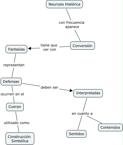 Neurosis Histérica, Cuerpo utilizado como Construcción Simbólica, Conversión tiene que ver con Fantasías, Interpretadas en cuanto a Sentidos, Defensas ocurren en el Cuerpo, Interpretadas en cuanto a Contenidos, Defensas deben ser Interpretadas, Neurosis Histérica con frecuencia aparece Conversión, Fantasías representan Defensas