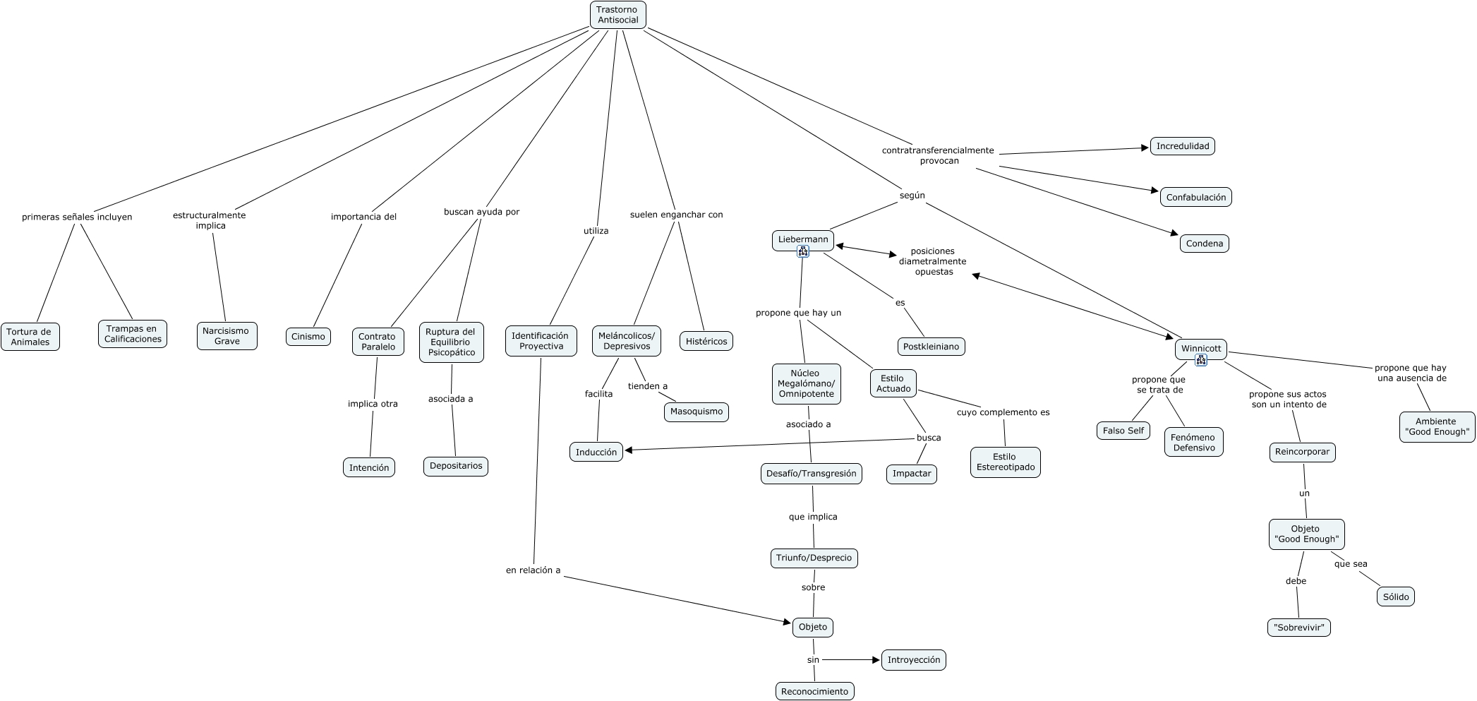 Trastorno Antisocial, Liebermann propone que hay un Estilo Actuado, Trastorno Antisocial contratransferencialmente provocan Condena, Estilo Actuado busca Inducción, Trastorno Antisocial según Liebermann, Núcleo Megalómano/ Omnipotente asociado a Desafío/Transgresión, Trastorno Antisocial contratransferencialmente provocan Confabulación, Estilo Actuado busca Impactar, Liebermann es Postkleiniano, Winnicott propone que se trata de Fenómeno Defensivo, Trastorno Antisocial suelen enganchar con Histéricos