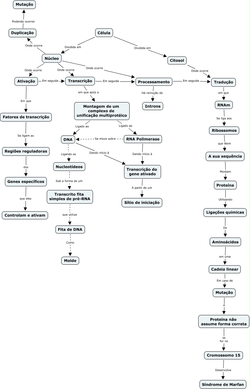 Luan+Mayara+João+Luciana+Ricardo, Mutação a Proteína não assume forma correta, Transcrito fita simples de pré-RNA que utiliza Fita de DNA, Genes específicos que eles Controlam e ativam, Célula Dividida em Núcleo, Tradução em que RNAm, Processamento Em seguida Tradução, Regiões reguladoras dos Genes específicos, DNA Dando início à Transcrição do gene ativado, Duplicação Podendo ocorrer Mutação, Ligações quimicas De Aminoácidos