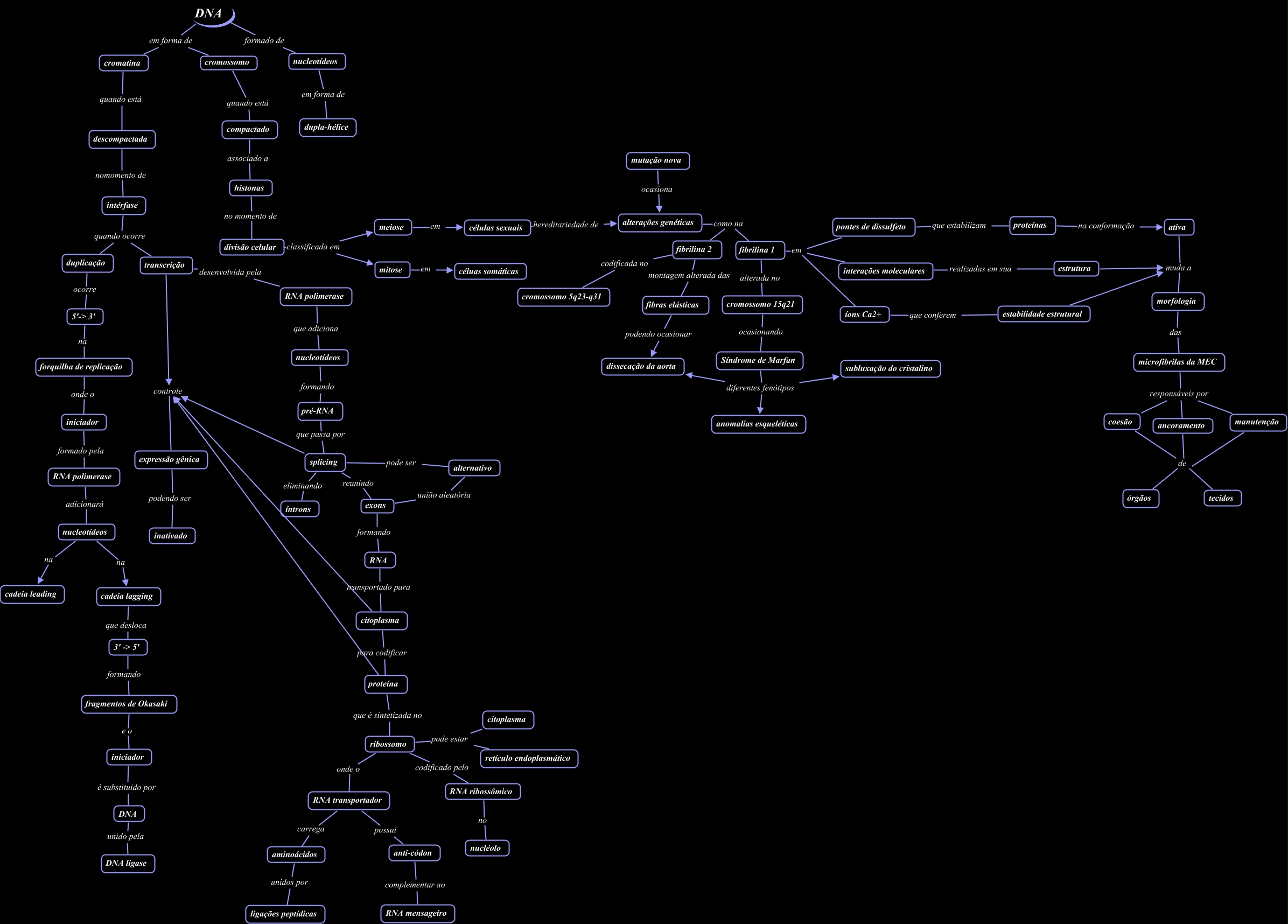Mapa Grupo 2, anti-códon complementar ao RNA mensageiro, divisão celular classificada em mitose, íons Ca2+ que conferem estabilidade estrutural, alterações genéticas como na fibrilina 2, 3' -> 5' formando fragmentos de Okasaki, ribossomo onde o RNA transportador, fibras elásticas podendo ocasionar dissecação da aorta, Síndrome de Marfan diferentes fenótipos subluxação do cristalino, divisão celular classificada em meiose, microfibrilas da MEC responsáveis por manutenção