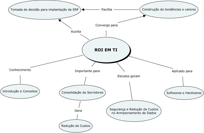 ROI EM TI, ROI EM TI Conhecimento Introdução e Conceitos, ROI EM TI Estudos geram Segurança e Redução de Custos no Armazenamento de Dados, Construção de tendências e valores Facilita Tomada de decisão para implantação de ERP, ROI EM TI Auxilia Tomada de decisão para implantação de ERP, ROI EM TI Converge para Construção de tendências e valores, Consolidação de Servidores Gera Redução de Custos, ROI EM TI Aplicado para Softwares e Hardwares, ROI EM TI Importante para Consolidação de Servidores