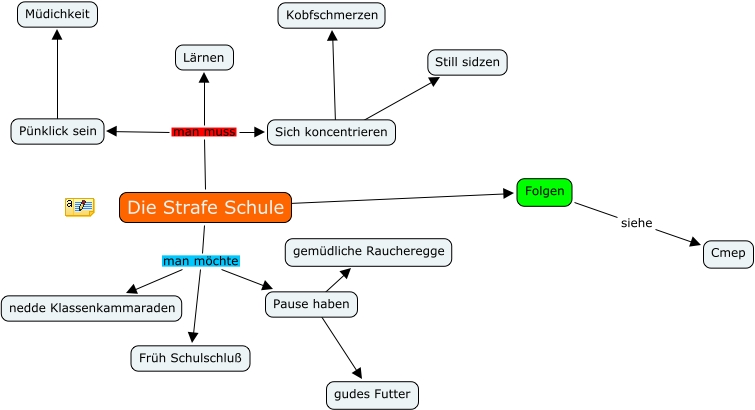 Die Strafe Schule, Pause haben ???? gemüdliche Raucheregge, Pause haben ???? gudes Futter, Pünklick sein ???? Müdichkeit, Die Strafe Schule man möchte Früh Schulschluß, Die Strafe Schule man muss Pünklick sein, Die Strafe Schule man muss Sich koncentrieren, Sich koncentrieren ???? Kobfschmerzen, Die Strafe Schule man muss Lärnen, Sich koncentrieren ???? Still sidzen, Folgen siehe Cmep