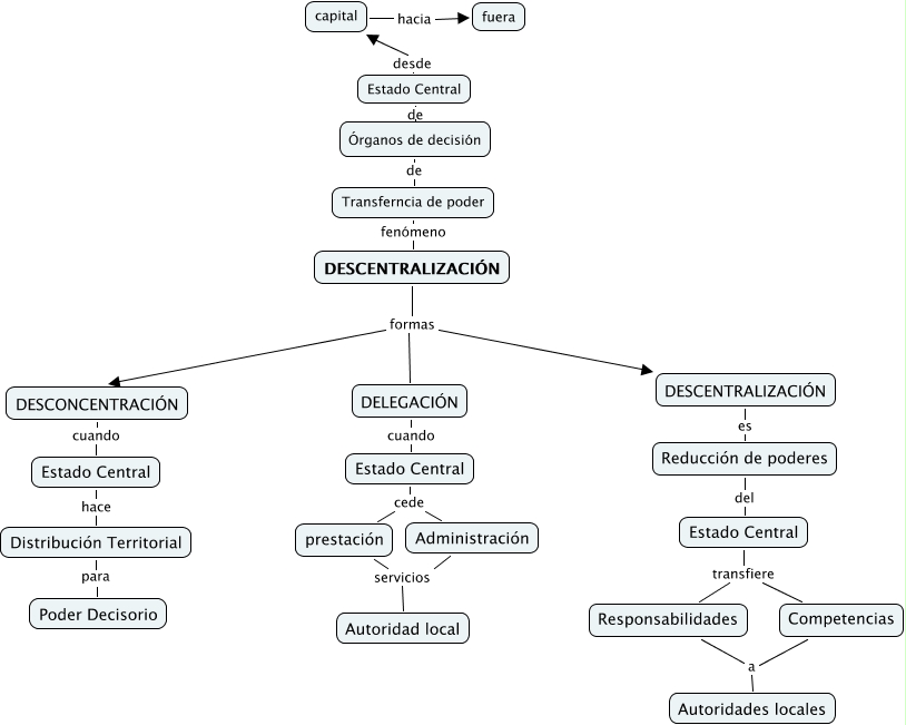 Andrea Moreno Descentralización, Responsabilidades a Autoridades locales, prestación servicios Autoridad local, Distribución Territorial para Poder Decisorio, DESCENTRALIZACIÓN es Reducción de poderes, Estado Central transfiere Responsabilidades, Administración servicios Autoridad local, DESCENTRALIZACIÓN formas DESCONCENTRACIÓN, Transferncia de poder de Órganos de decisión, Estado Central transfiere Competencias, DESCENTRALIZACIÓN formas DESCENTRALIZACIÓN