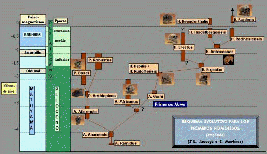 Prehistoria, Instrumentos ???? Madera, fibras y pieles, Parant. Aethiopicus 2 m. años Parant.Robustus, Arte Neolítico Expresiones conocidas Nuevas Tecnologías, Instrumentos ???? Industria lítica, Plioceno Sólo hominoides No hay instrumentos Aparecen los instrumentos Paleolítico, Paleontología teorías diversas Lamarckismo, Austr. Afarensis 2,5 m. años Parant. Aethiopicus, Instrumentos Materiales conservados y materiales biodegradables Industria lítica, Hombre Neolítico es Sedentario, Australopithecus Anamensis 3,2 m. años ????
