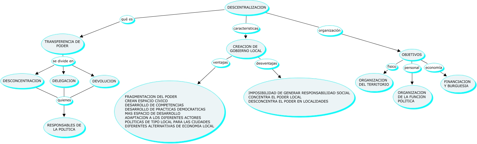 DESCENTRALIZACION LEONARDO ORTIZ 08482, DESCENTRALIZACION organización OBJETIVOS, OBJETIVOS fisico ORGANIZACION DEL TERRITORIO, TRANSFERENCIA DE PODER se divide en DELEGACION, TRANSFERENCIA DE PODER se divide en DESCONCENTRACION, OBJETIVOS economía FINANCIACION Y BURGUESIA, CREACION DE GOBIERNO LOCAL ventajas FRAGMENTACION DEL PODER CREAN ESPACIO CIVICO DESARROLLO DE COMPETENCIAS DESARROLLO DE PRACTICAS DEMOCRATICAS MAS ESPACIO DE DESARROLLO ADAPTACION A LOS DIFERENTES ACTORES POLITICAS DE TIPO LOCAL PARA LAS CIUDADES DIFERENTES ALTERNATIVAS DE ECONOMIA LOCAL, DESCONCENTRACION quienes RESPONSABLES DE LA POLITICA, DEVOLUCION quienes RESPONSABLES DE LA POLITICA, OBJETIVOS personal ORGANIZACION DE LA FUNCION POLITICA, DESCENTRALIZACION qué es TRANSFERENCIA DE PODER